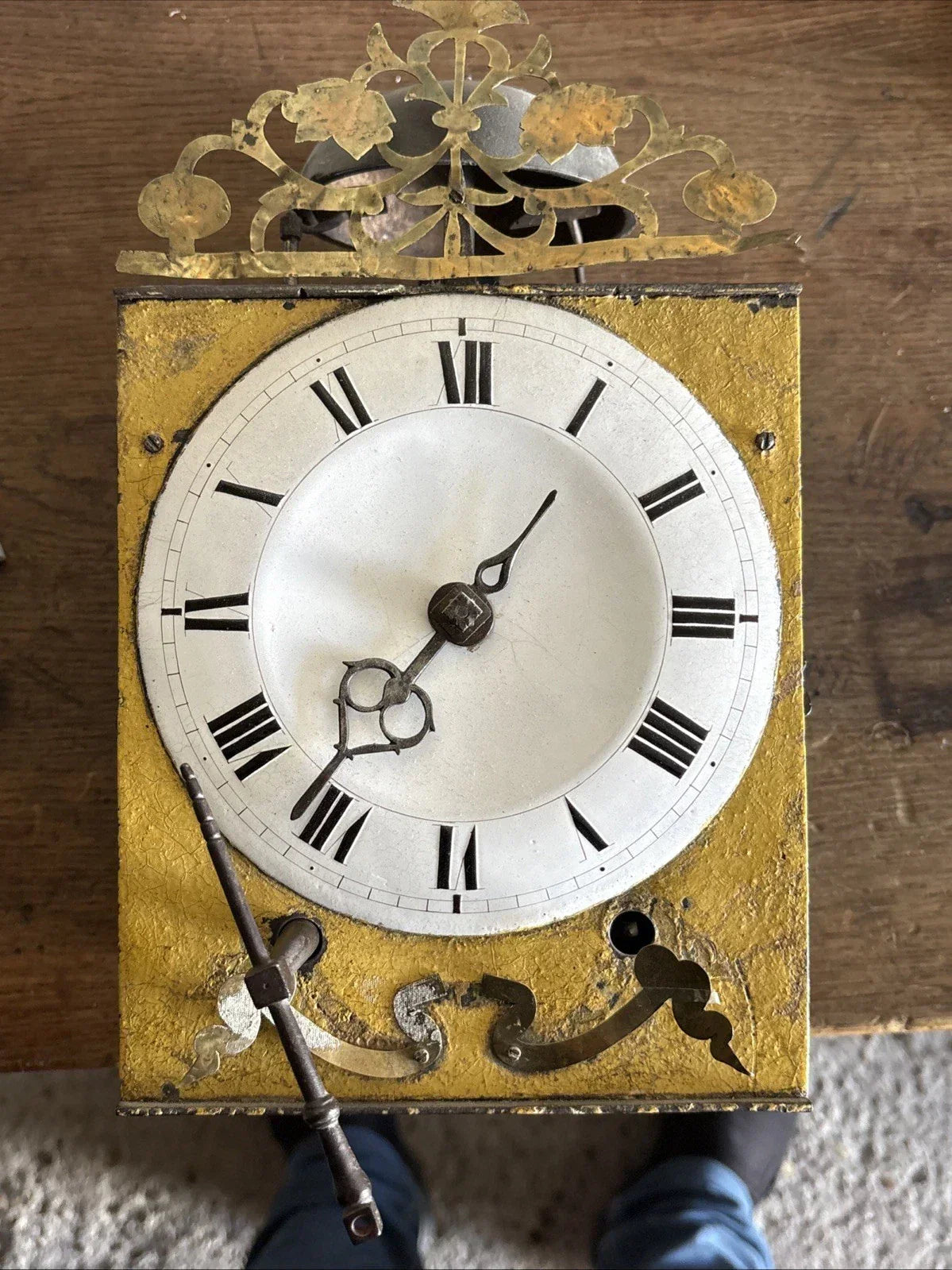 Mécanisme authentique d'horloge comtoise du XVIIIe siècle, témoignant du savoir-faire horloger régional. Cette pièce historique impressionne par ses dimensions substantielles : 37 cm de hauteur, 24 cm de largeur et 15 cm de profondeur. Son architecture mécanique caractéristique en fait un élément de choix pour les collectionneurs avertis et les restaurateurs spécialisés dans l'horlogerie traditionnelle française. Un objet d'exception pour qui apprécie l'ingénierie horlogère d'époque.