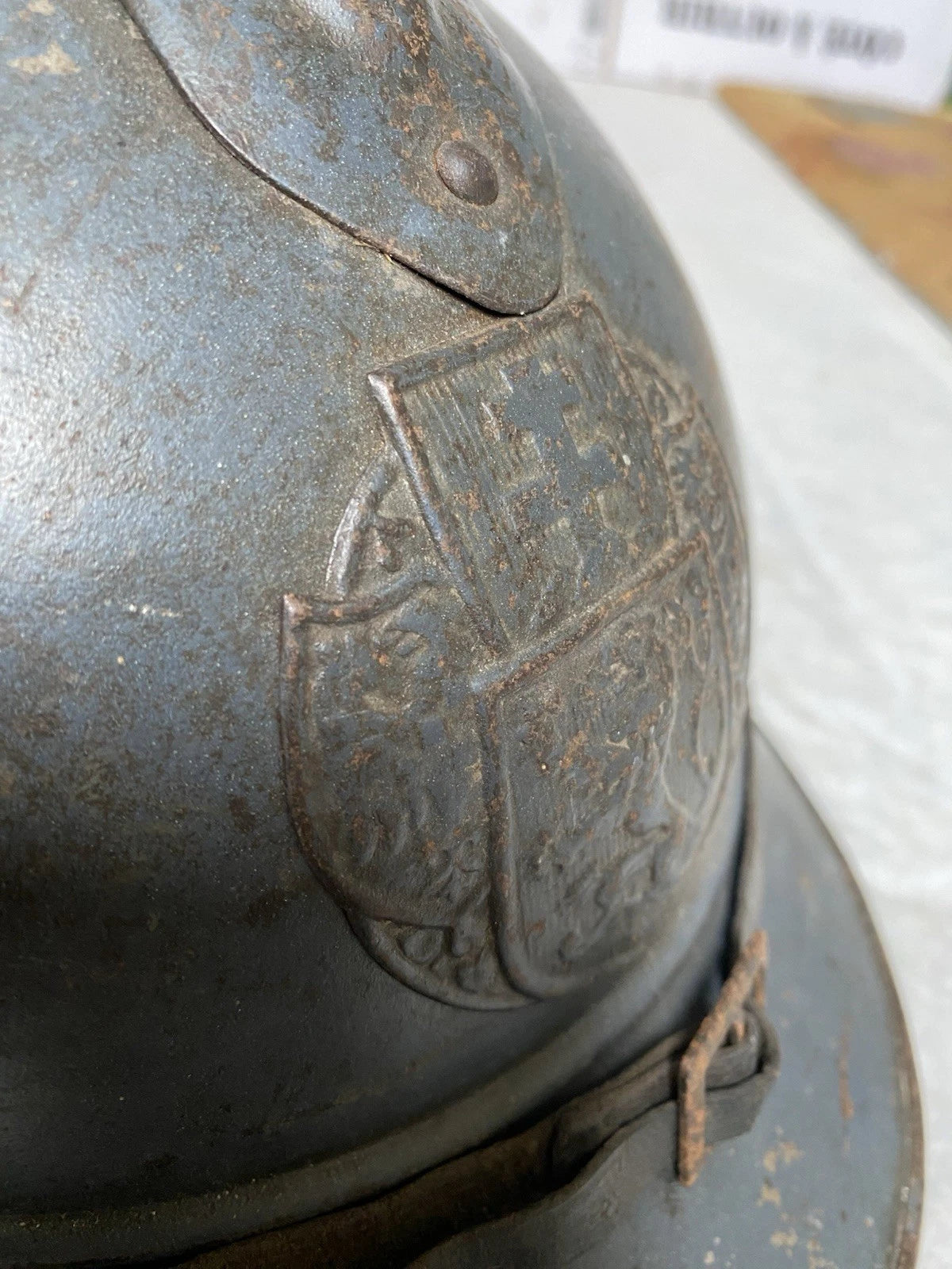 Casque Adrian modèle 15 de la Légion tchèque, pièce historique authentifiée. Ce casque militaire emblématique incarne l'héritage des forces armées tchèques du début du XXe siècle. Exemplaire original en excellent état de conservation, idéal pour les collectionneurs de militaria et les passionnés d'histoire militaire européenne.