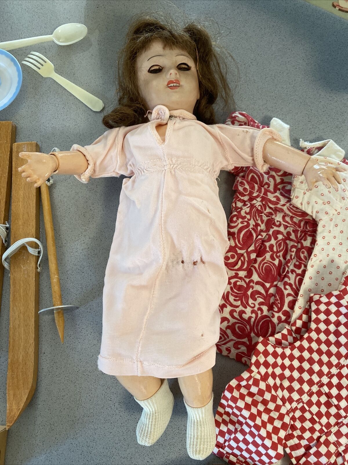 Ensemble de collection exceptionnel réunissant des poupées Bleuette et Bambino d'époque, accompagnées de deux lits Gautier-Langereau authentiques, dont un berceau en carton démontable. Cet ensemble complet intéressera les collectionneurs avertis grâce à son état de conservation remarquable : poupées sans défaut, accessoires intacts et bien préservés. La dotation inclut une garde-robe variée, des chaussures miniatures et divers éléments de mise en scène, permettant une reconstitution fidèle de l'univers de ces poupées historiques. Une acquisition rare pour les passionnés de jouets anciens et de patrimoine ludique français.