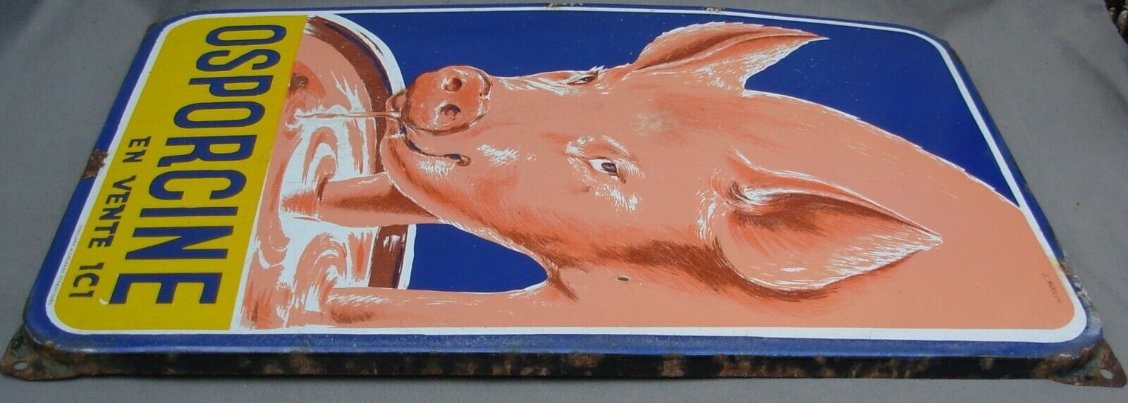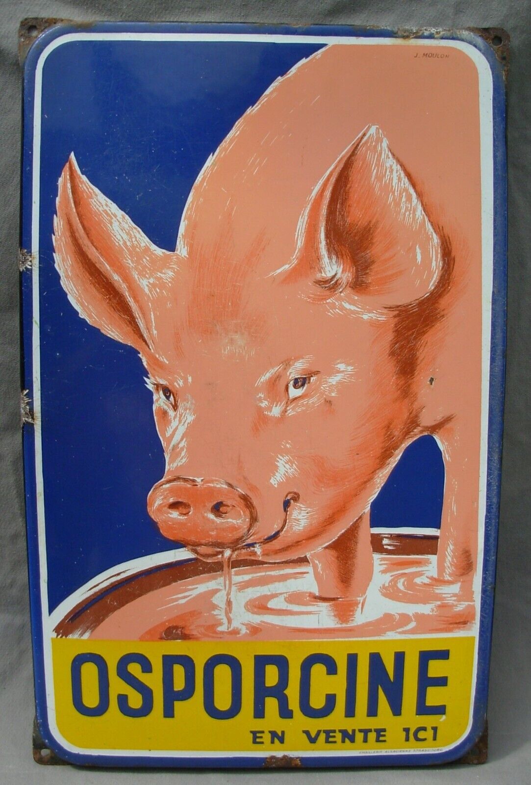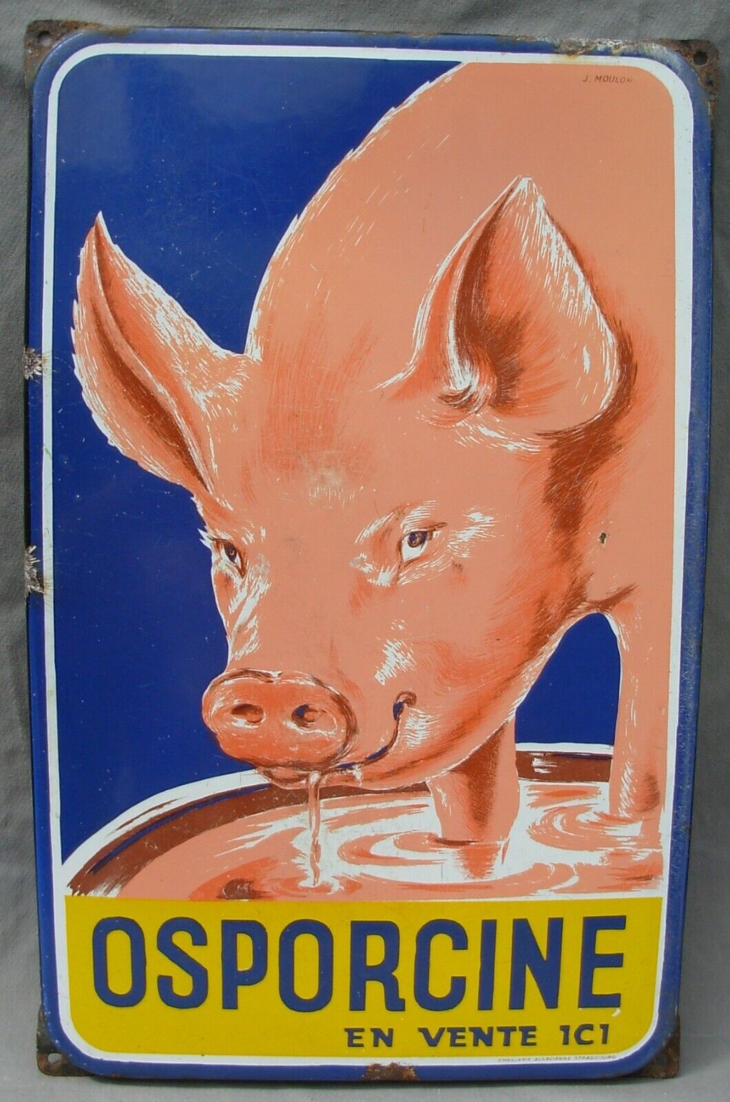 Plaque émaillée publicitaire OSPORCINE signée J.MOULON